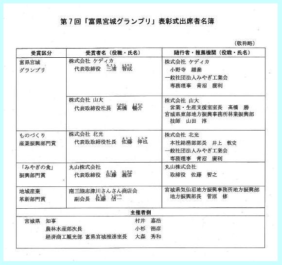 第7回「富県宮城グランプリ」株式会社北 光はものづくり産業振興部門賞を受賞