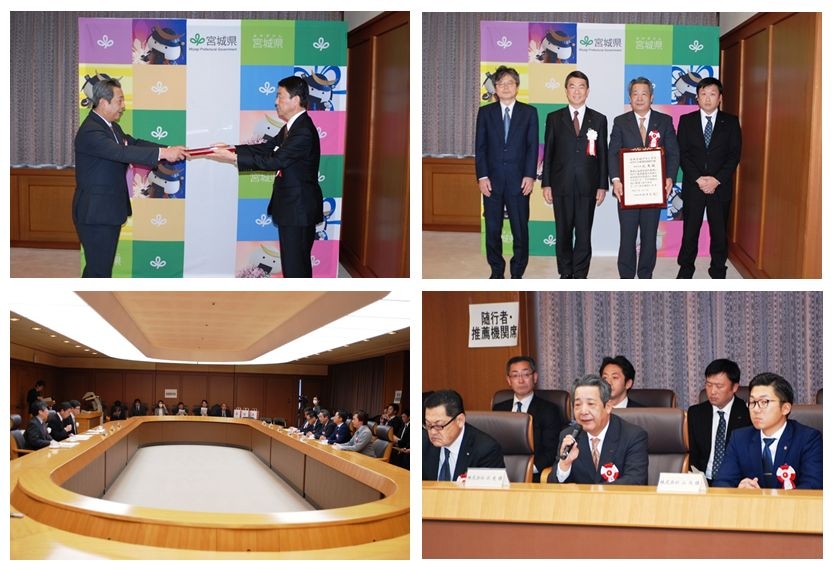 平成31年1月31日 表彰式が県庁でおこなわれ,知事より代表取締役社長 佐藤伸也に賞状、及び記念品が授与されました。