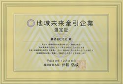 「地域未来牽引企業」は、地域の特性・強みを生かして高い付加価値を創出し、将来、成長が期待できる分野での需要を地域内に取り込んで経済的な波及効果を及ぼすような、地域経済をリードする中核企業として、地域内外の取引実態や雇用・売上高を勘案し、地域経済への影響力が大きく、成長性が見込まれる企業として経済産業省より選定頂きました。2018年12月25日