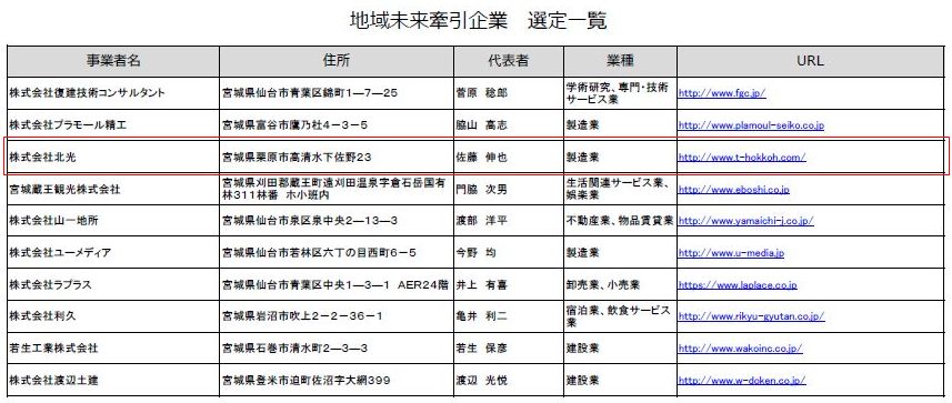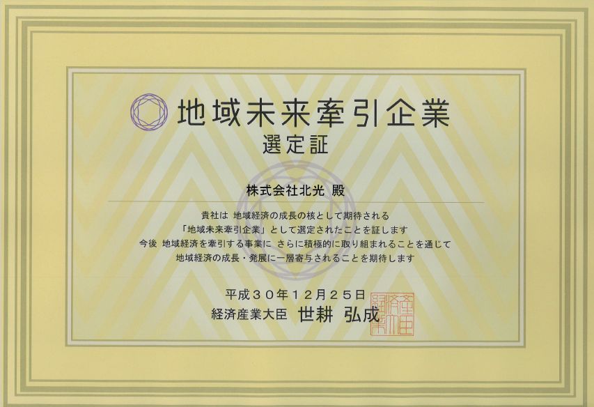 株式会社 北光は「地域未来牽引企業」に選定されました